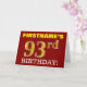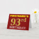 Ce design de carte de salutation d'anniversaire comporte un message comme "le quatre-vingt-treizième ANNIVERSAIRE de FIRSTNAME ! ", avec "le quatre-vingt-treizième" ayant un faux/imitation or-comme l'aspect de couleur. Le nom du destinataire sur l'avant peut être customisé, et l'arrière - plan avant est coloré rouge. Il comporte également un message personnalisable de salutation d'anniversaire sur l'intérieur. Une carte de voeux d'anniversaire comme ceci a pu peut-être être donnée à quelqu'un dans la célébration de leur quatre-vingt-dix troisième anniversaires. [~Z0000184]