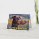 Photographie de ma carte de voeux rouge de dobermann de délivrance. Le texte sur l'avant lit le "joyeux anniversaire !" et l'intérieur des textes lit le "espoir que vous avez un jour splendide !" Le texte peut être personnalisé.