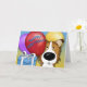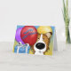 Adorable Big Nose Rough Collie avec un cadeau d'anniversaire et tenant des ballons dans sa bouche. Le ballon dit Rappy Rirthday !