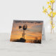 Une silhouette de moulin à vent avec des nuages jaunes dorés, avec des silhouettes d'arbres, sur une CARTE.