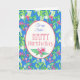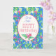 Une jolie carte d'anniversaire fleurie pour une soeur, avec un motif de Faux Orange et Weigela sur un arrière - plan bleu vif. Le design est d'une aquarelle peinte à la main et le lettrage est en rose profond et vous pouvez customiser le message intérieur.