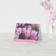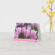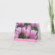 La carte d'anniversaire est présentée avec une photo imprimée de jolis tulipes roses. Message À l'intérieur Customisez cet objet ou achetez tel quel. Image sous licence