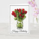 Carte d'anniversaire avec une belle photo couleur tulipes rouges. Customisez cette carte ou achetez tel quel. La carte contient un message spécial.