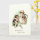 Un magnifique anniversaire vintage montrant un garçon victorien à genoux pour une jolie fille tenant une couronne de fleurs. Jolie carte vintage pour toute femme ou petite fille.