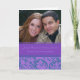 Carte d'annonce de fiançailles avec un design tourbillonnant vibrant et élégant bleu sarcelle et violet foncé, unique et stylé, personnalisable avec vos noms et votre propre photo, le moyen idéal pour partager votre bonne nouvelle avec la famille et les amis.