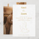 Carte d'annonce de mariage classique avec un design élégant de colombe blanche et dorée. Une carte magnifiquement pliée pour annoncer la date de votre mariage dans un style intemporel et raffiné. Imprimé à plat — sans gaufrage ni texture en relief. Entièrement personnalisable avec vos informations d'événement.