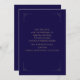 Célébrez votre jour spécial avec cette carte d'annonce de mariage bleu marine exquise. Parfaite pour les couples recherchant un design formel, élégant et intemporel, cette carte combine une typographie classique avec une mise en page sophistiquée. Idéale pour les mariages de luxe, elle comprend des sections claires pour les noms, la date, l'heure et le lieu, tous magnifiquement mis en valeur en or sur un fond bleu marine profond.