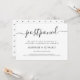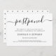 Carte d'annonce de mariage reporté moderne noir et blanc avec un motif à pois au verso. Si la date de votre mariage a dû être modifiée, c'est un excellent moyen de prévenir vos invités.