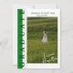 Personnalisez cette invitation de remise de diplôme linéaire verte et blanche, cérémonie de remise de diplôme, invitation de remise de diplôme de maternelle. Pour les collèges tels que l'UNT, l'Université du Nord du Texas à Denton, les Stetson Hatters, les Spatans de l'État du Michigan ou l'école professionnelle, maîtrise. Pas nécessairement pour un seul type de diplômé, car ce texte peut être modifié. Ajoutez vos propres photos pour célébrer votre grand jour !
