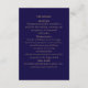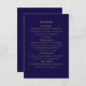complétez votre suite de mariage élégante en marine et or avec cette carte d'annonce assortie. conçue pour compléter votre invitation principale, cette carte fournit tous les détails essentiels du mariage, y compris la réception, le transport, l'hébergement et les informations sur le site web. parfaite pour une célébration intemporelle et sophistiquée.