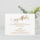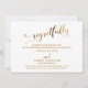La distinction de cette suite est due à la police de caractères moderne embellie de cœurs et à un effet de feuille d'or faux utilisé pour les phrases d'accentuation. Si vous vous trouvez dans la position de devoir informer vos invités de mariage que vous annulez votre mariage, voici une option élégante. Dans ce modèle, la jolie police de caractères a été utilisée pour créer un graphique représentant simplement le mot "regretfully". Utilisez les champs de modèle pour ajouter vos informations personnelles et rendre ce design moderne unique vôtre. Le fond blanc peut être changé en n'importe quelle couleur de votre choix. Le dos a été recouvert d'un motif doré répétitif qui permet à la couleur choisie de transparaître entre les lignes. N'hésitez pas à nous contacter pour toute demande spéciale ou pour une aide à la personnalisation. // 80 //