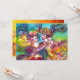 Invitation d'art fin et colorée, élégante et vibrante. Danseuses de carnaval romantiques : Figures de danse artistiques, fantaisistes et expressives, une belle femme blonde en costume à plumes scintillantes danse avec un jeune Arlequin avec une plante papillon magique au verso de la carte. Peinture à l'aquarelle dans des couleurs vives rose, fuchsia, vert, rouge, bleu, jaune, avec des paillettes d'or inspirées de la Comédie de l'Art (Commedia dell'arte) et du Carnaval de Venise. C'est également un beau design pour les faire-part de mariage, les programmes, les "save the date", les anniversaires de mariage, les réunions, les fiançailles romantiques, les douches de mariée, les occasions spéciales, les fêtes de fin d'année, le bal masqué de Mardi Gras, les fêtes