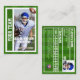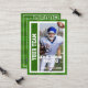 Soyez comme les pros en ayant votre propre coutume, quarterback de football, carte de trading. Cette carte sportive peut être modifiée pour présenter des photos de vous sur le devant et le dos, ainsi que vos statistiques personnelles sur le quart-arrière de football sur le dos. L'avant de la carte a un design de zone de fin de football sur le côté gauche, où vous pouvez insérer votre nom d'équipe dans une police de sport. L'arrière - plan du dos de la carte dispose d'un terrain de football à herbe rayée. Vous obtiendrez plein de cartes dans un pack parce que ces cartes de football collectibles sont destinées à échanger avec des amis ou donnés à des proches. Fait un grand souvenir ou souvenir. Mettez votre petit joueur de ligue sur une carte aujourd'hui !