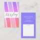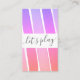 Rencontrez les nouvelles mamans moins gênantes et stressantes avec ces cartes de date de jeu arc-en-ciel - avec "jouons" sur le devant avec des bandes peintes à la main arc-en-ciel dans l'arrière - plan et à l'arrière inclut les coordonnées. Customisez simplement en ajoutant votre propre nom et vos coordonnées et préparez-vous à distribuer à votre prochaine opportunité de réseautage parent.