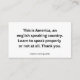 Utilisez ces cartes pour faire savoir à tout le monde que nous vivons dans un pays anglophone, et ils doivent apprendre à parler correctement.