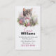 Joli enfant personnalisé appelant / carte de date de jeu. L'aquarelle d'un chaton à table mignon, avec une cravate arc rose, est assise dans un lit ou des fleurs sauvages, sur le dessus de la carte. Personnalisez le texte, avec les informations de votre enfant. Fait de belles cartes pour organiser des fêtes d'anniversaire et jouer des dates avec d'autres mamans.