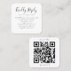 Vous n'avez pas à vous inquiéter de la disparition des retours RSVP dans le courrier lorsque vous invitation des invités à RSVP en ligne à la place. Créez un code QR qui envoie les invités directement à votre site Web mariage, puis ajoutez toutes les instructions importantes au recto de la carte. **VEUILLEZ LIRE AVANT DE COMMANDER** Si vous modifiez la forme ou la taille ou choisissez un autre produit et que le design est recadré de quelque façon que ce soit ou ne semble pas sur la page, vous devrez utiliser le service de design en direct pour que quelqu'un vous adapte la disposition, sauf si vous êtes à l'aise de le faire vous-même. Votre commande va directement aux imprimantes afin que ce que vous voyez à l'écran soit ce qui vous sera imprimé et expédié. Dans cet esprit, veuillez également triple-vérifier pour toute erreur d'orthographe ou information incorrecte avant de passer votre commande.