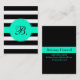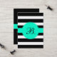 Télécarte noire et blanche de rayure avec des accents de seafoam. Initiale de personnaliser et tout autre texte. Vous pouvez également télécharger votre propre logo ou image !