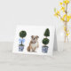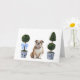 Ces cartes de voeux comportent un portrait aquarelle d'un bulldog assis entre deux topiaires de style chinoiserie.