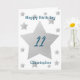 L'aquarelle grise étoiles heureux 11e anniversaire carte pour fils, petit-fils, neveu, etc... L'avant est décorée d'étoiles gris aquarelle et d'un endroit où vous pouvez personnaliser avec le nom du récipiendaire de l'anniversaire. Le message de la carte intérieure peut être facilement personnalisé et le dos avec l'année. Cela ferait une grande carte d'anniversaire personnalisée pour les enfants.