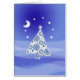Une petite carte de vacances avec un arbre de Noël doux, des étoiles et la lune. Des tons de bleu et de blanc paisibles. © Molly Harrison