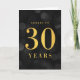 Chic 30th Birthday Greeting Card avec les mots "Cheers to 30 Years" en fausse feuille d'or contre un motif de bokeh gris foncé. Pour ajouter du texte à l'intérieur de la carte, cliquez sur le bouton "Personnaliser". *Veuillez noter que le filigrane Zazzle qui apparaît dans l'aperçu du zoom n'apparaîtra PAS sur le produit imprimé final. © Bois de rose et agrumes