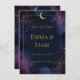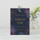 Dark Celestial Enregistrer la date | Gold Constellations, Stars & Moon Mariage Faire-part Annoncez votre journée spéciale avec ce céleste sombre sauver la date, conçu avec des nuages d'aquarelle rêvés dans les tons marine et violet, constellations dorées, étoiles scintillantes, et une lune de croissant brillante. Une bordure dorée raffinée ajoute une finition élégante, parfaite pour les mariages de boho, de cosmique ou de soirée. Ce modèle entièrement personnalisable vous permet de personnaliser facilement vos noms, votre date et votre emplacement de mariage.