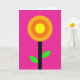 Cette carte de vœux présente un design floral minimaliste sur un fond magenta saturé qui se sent vivant et moderne. Au centre de la face avant se trouve une fleur stylisée faite de cercles concentriques nets, comme un soleil chaud et une fleur qui s'ouvre en même temps. Le cercle intérieur est jaune vif, entouré d'un anneau orange puis d'un cercle extérieur plus profond de couleur tangerine, créant une lueur chaleureuse et intime ❤️. Une tige noire droite descend verticalement sous la fleur, donnant à la composition un aspect stable et ancré. Deux feuilles courbes s'étendent de la tige dans un vert fluorescent vif, se penchant l'une vers l'autre comme une étreinte douce entre amis 🌼. Tout texte se trouve près du haut en petites lettres noires, laissant la fleur occuper la majeure partie de l'attention. Les formes plates n'ont pas d'ombrage ni de texture, avec des bords nets qui se détachent fortement sur le fond rose chaud. Les feuilles vertes s'incurvent vers l'extérieur de la
