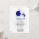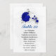 Romantique bleu royal & fleurs blanches avec carte de sièges mariages botaniques feuille argent. Les détails de la parties scintillant sont simulés.