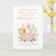 This design features an watercolor illustration of a gold colored chalice with a candle, surrounding by pink and white little flowers.