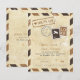 Carte d'avis de sauvegarde inspirée du courrier aérien dans des tons anciens de brun foncé et clair. Timbre factice et marques de poste pour un mariage sur le thème du voyage.