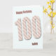 Une carte de 100ème anniversaire très moderne. Cette carte est vraiment fabuleuse. Grandes lettres à rayures modernes sur un arrière - plan bleu. Personnaliser pour votre propre message unique.