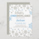 Fêtez le premier anniversaire de votre bébé garçon avec cette élégante invitation Blue & Silver Winter ONEderland! Conçu avec des flocons de neige étincelants, des tons bleus glacés et des accents argentés chatoyants, il est parfait pour une célébration hivernale magique. Entièrement personnalisable avec le nom de votre enfant, l’âge, la date de la fête et les informations RSVP. Idéal pour un premier anniversaire classe et mémorable. Facile à personnaliser et à imprimer ou à partager numériquement!