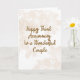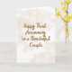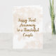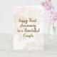 Carte de 3e anniversaire de mariage avec des fleurs beiges sur fond blanc.