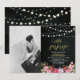 Célébrez votre jour spécial avec cette invitation personnalisée pour anniversaire de mariage. Cette création présente une belle typographie "chut...c'est une surprise" et des guirlandes lumineuses sur fond tableau noir. Remplacez la photo d'exemple par votre propre photo. D'autres invitations et fournitures pour anniversaire de mariage sont disponibles dans ma boutique BaraBomDesign.