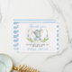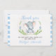 Le carte de remerciements de baby shower d'éléphant de l'aquarelle de ce garçon comporte une guirlande de baie et de feuillage et un éléphant mignon sur une image balayée de papier d'aquarelle. Les côtés de la carte comportent un motif rayé de bleu layette et blanc. L'invitation semblable de baby shower de conception est également disponible au magasin. Le carte de remerciements de baby shower d'éléphant de l'eau de ce garçon est prêt à être personnalisé.