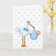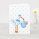 Le design de bébé bleu pour un bébé avec une cigogne portant un bébé garçon sur un arrière - plan à coeur bleu. Cette carte peut être utilisée pour les invitations à la douche pour bébés, les annonces de naissance ou les cartes de voeux. Ajoutez simplement le texte qui vous convient.
