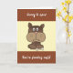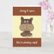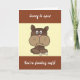 Une carte humoristique Get Well avec un jeu de mots message pour toute personne. Doté d'un triste chien de dessin animé brun avec un os et les mots. Désolé d'entendre que vous êtes "Feeling Ruff" tous mis sur un arrière - plan rayé brun et crème. Garanti de lever un sourire Mettez votre propre message spécial Get Well Bientôt à l'intérieur. Visitez notre magasin pour plus de grands designs