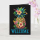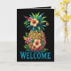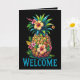 Bienvenue à quelqu'un avec une explosion de joie tropicale. Cette carte de voeux pliée présente un ananas vibrant entouré de fleurs luxuriantes et de feuillage, avec le mot "BIENVENUE" en caractères turquoises gras. Parfait pour les locations de vacances, les chambres d'hôtes ou les paniers chauffants, il ajoute une touche chaude et ensoleillée à tout espace. Le message intérieur est modifiable, vous pouvez donc le personnaliser avec votre propre note de coeur.