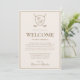 Carte de bienvenue de mariage de golf avec monogramme de blason classique élégant.