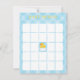 Ajoutez du plaisir à votre douche bébé garçon avec cette carte de bingo en caoutchouc bleu! Doté d'un accent canard jaune vif et bleu doux, cette carte de jeu ludique est parfaite pour tenir les invités engagés dans votre célébration à thème canard. Une touche de fête douce et interactive.