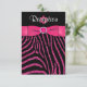 Cette parties scintillant FAUX (IMPRIMÉE) zébré à la mode rose chaud, noir et blanc, à rayures, avec un ruban en satin rose fuchsia IMPRIMÉ et un broche en diamant et en bijoux IMPRIMÉ, correspond à l'invitation de la fête Bat mitzvah ci-dessous. Il est montré ici sur le papier de base, mais il aurait l'air très agréable sur le papier métallique dans la "glace", qui a une opalescence subtile et étincelante à lui. Vous pouvez également l'utiliser comme carte d'itinéraire, carte d'hébergement ou carte d'information. Le texte et le type de papier sont personnalisables. Si vous avez besoin d'autres articles correspondants, veuillez envoyer un courriel à niteowlstudio@gmail.com avec votre demande.