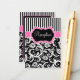 Cette carte moderne et chic, rose, noir et blanc rayé, porte-fenêtre damassée à fleurs, correspond au faire-part de mariage ci-dessous. Vous pouvez également l'utiliser comme carte ou carte d'itinéraire ou carte d'information du mariage en modifiant le texte en conséquence. ****VEUILLEZ NOTER que tout s'imprime à mesure que vous le voyez sur votre écran. Je ne verrai pas votre produit et Zazzle ne modifiera rien pour les fautes de frappe, l'alignement, etc., alors assurez-vous que tout votre texte est centré et sans erreur. Si vous avez besoin d'aide, envoyez-moi un courriel AVANT de passer votre commande. Si vous avez besoin d'articles correspondants, veuillez envoyer votre demande par courriel à niteowlstudio@gmail.com.