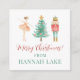 Cette carte de boîtier de Noël personnalisée fait des cadeaux d'emballage une brise! Le design présente des illustrations de noix-cou aquarelle avec un motif plaid rouge au dos de la carte.