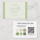 Sage est souvent considéré comme une belle couleur terreuse. Si votre mariage inclut de la sauge, cette carte de boîtier de palette de couleurs est juste pour vous. La carte est dotée de couleurs complémentaires pour de belles séances photo. Vous pouvez également modifier les couleurs, si vous le souhaitez. De plus, vous pouvez customiser le code QR pour votre liste RSVP en ligne, le registre des mariages, et plus encore. Utilisez le modèle pour customiser.