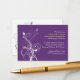 Cette carte d'enceinte fleurie violette et blanche correspond au faire-part de mariage ci-dessous. Il y a un endroit pour vous d'inclure des indications pour votre lieu de rendez-vous, si nécessaire. S'il y a d'autres articles correspondants dont vous avez besoin, veuillez envoyer votre demande par courriel à niteowlstudio@gmail.com.