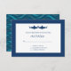 Le mariage parfait rsvp pour n'importe quel couple amoureux des requins. Arrière - plan bleu marine classique avec silhouette de requin bleu marine. Le dos du rsvp a un motif à vague moderne.