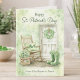 Célébrez la Saint-Patrick avec un charme sincère et une chaleur de style cottage. Cette carte de vœux à l'aquarelle présente un porche de cottage irlandais accueillant orné d'une couronne de trèfle, d'une chaise à bascule, de bottes vertes et de verdure printanière douce — une scène confortable qui capture l'esprit de la maison et de la tradition.