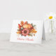 Célébrez la saison avec cette carte joyeuse présentant une citrouille décorative entourée de feuilles d'automne, de baies et d'une floraison rose vibrante. L'élégant script « Remerciements Festifs » ajoute une note joyeuse, tandis que l'intérieur vierge vous donne de l'espace pour partager votre propre gratitude. Un choix parfait pour les rassemblements d'automne et les bonjours sincères.