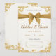 Invitez vos proches avec cette invitation de mariage élégante blanche et or. Avec un design de ruban doré moderne sur fond blanc épuré, cette carte est parfaite pour les couples qui souhaitent une invitation de mariage intemporelle et luxueuse. Idéale pour les cérémonies, les réceptions ou les cartes "save the date", cette invitation personnalisable allie sophistication et style pour impressionner chaque invité. Un élément de papeterie de mariage doré élégant pour les couples qui célèbrent leur grand jour.